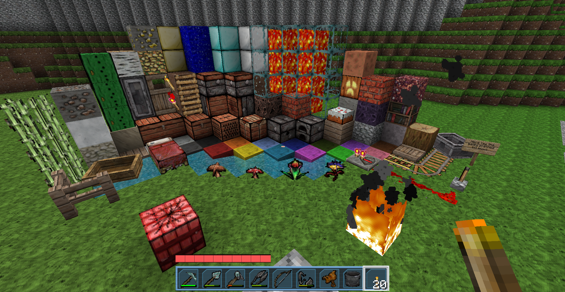 So recently I started looking into minecraft texture packs. I’d always been pretty happy with my highly customised Painterly pack, including icy cobblestone, chocolate cake and tinted red glass. But taking up an hour after each patch to re-tweek and update the Painterly pack wasn’t the best use of my time…after all – I could be busy mining fake diamond! So I decided to look into some more packs, see if any came up trumps. I started with some relatively simple 16 x 16 texture packs (for those of you not acquainted with texture packs – this means 16 pixels in each direction on the face of the cubes). Amongst these ones were Frenden, Jollycraft and Good Morning Craft. Now I must say, I had mixed feelings about these, I did like them, but – especially with Frenden – I felt they were a little too plain.