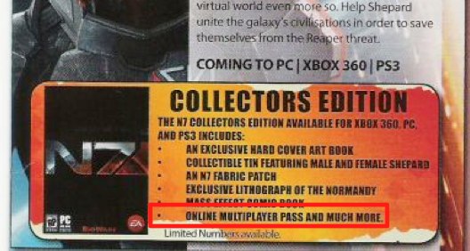 No, seriously, it apparently will contain an “Online Multiplayer Pass”. This is big and interesting news… in a way… As this was posted on the Bioware forums, which are on the Internet, people are still arguing about whether or not it is true. If we assume it isn’t true and it’s just some mistake and means some new “Cerberus Network” thing like there was in Mass Effect 2, well, no big deal really… I suppose…
