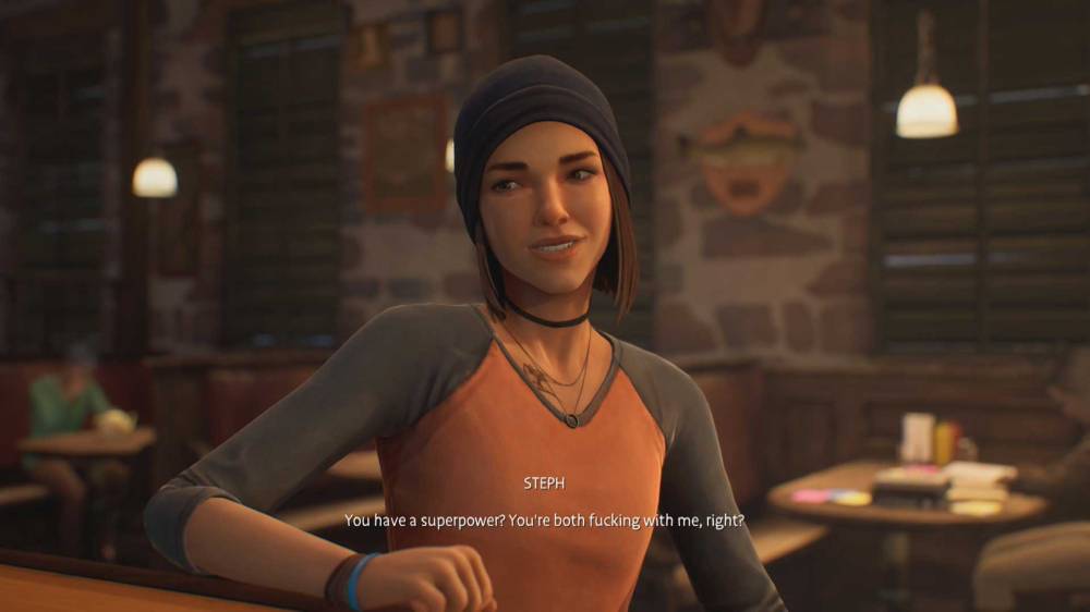 As has been the case with every other LiS, a big portion of True Colours is Alex learning how to control and use her powers. Seeing them as less of a “curse” and more of as a blessing. Of course, that’s just standard fare for LiS. I think it’s supposed to be some kind of allegory for growing up, self-acceptance and all that blah blah blah, but what do we care about that? Superpowers! Woo! Honestly, the amount of times you see someone get a superpower and they go all “woe is me I’m no longer boring and normal and instead have this ability to make cars float with my mind, I should hate myself for that…” It’s exhausting!