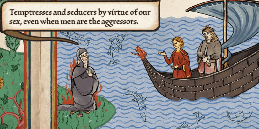 Essentially, a nun (Sister Illuminata), very early on in the game has a bit of a go at Andreas for one reason or another. In this speech she insists that different classes have their place in the hierarchy of the world (I.e. peasants, nobles, the Pope, God, that kind of thing). This feels very much in-keeping with the times, particularly for a nun. She THEN goes on a tirade about how little control women have over their lives, how oppressed they are and essentially how they deserve the same as men… Absolutely brushing past the fact that she basically had just insisted that peasants were meant to stay peasants. Not if they’re women apparently? Women alone deserved better?