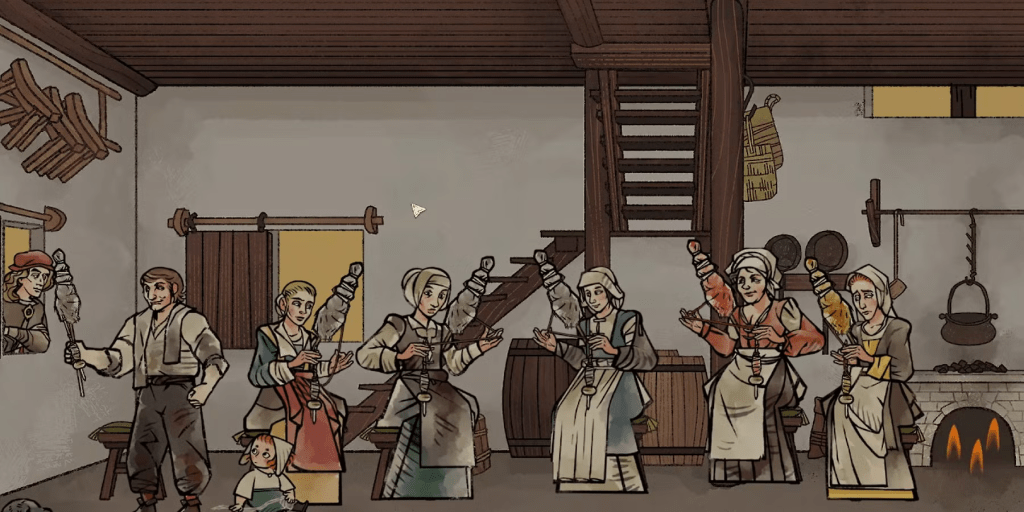 | – Simply utterly fabulous writing. Full stop. – Characters are just ordinary, everyday people and that just makes them totally compelling. – One of the most unique aesthetics and approaches to game design I have seen in a long time, which absolutely makes the game stand out in the mind. – Approach to diplomacy and speech checks is weighty and measured whilst also not making you constantly second-guess every decision. – Lovely, cozy vibes of just chilling with your villager friends in the 1500s, despite the backdrop. | – Murder mystery game where the actual solving of the murder mystery seems to take a back-seat. It’s not necessarily a negative, but it is a letdown based on the initial impressions – Overall illusion of choice is relatively low. It certainly feels like there’s plenty of choice in dialogue, but due to the aforementioned issues with “solving” the mystery, each playthrough is still going to more-or-less follow the same route. – Shut up about the passage of time! Shut up about the passage of time! |